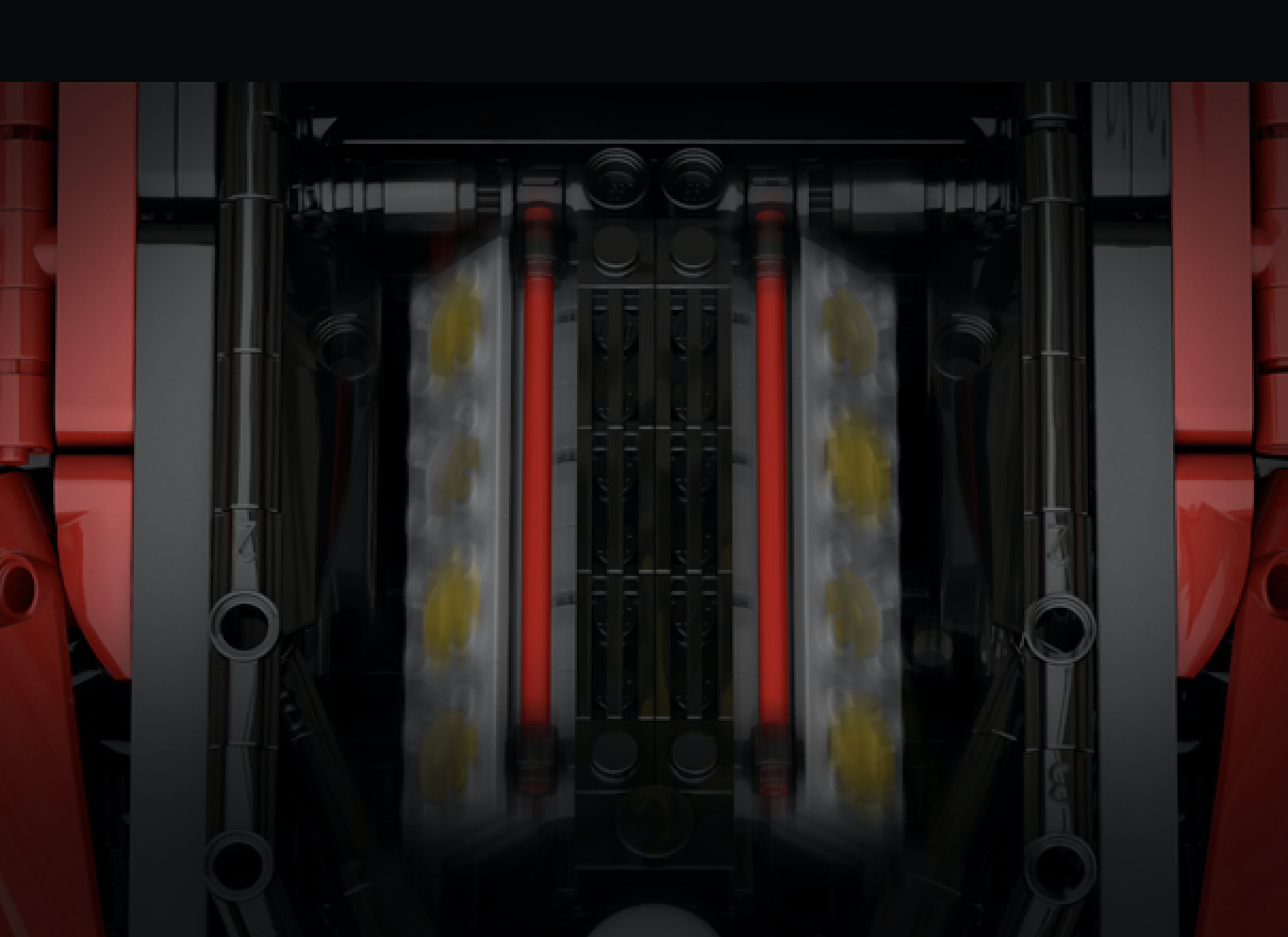 Aber lassen Sie sich nicht täuschen, bei diesem Modell dreht sich nicht alles um das Aussehen. Werfen Sie einen Blick unter die Karosserie und Sie entdecken einen vollständigen Türöffnungsmechanismus, einen ausfahrbaren Heckspoiler, eine funktionierende Lenkung, eine zu öffnende Motorhaube und natürlich ein detailreiches Getriebe mit rotierendem Motor.